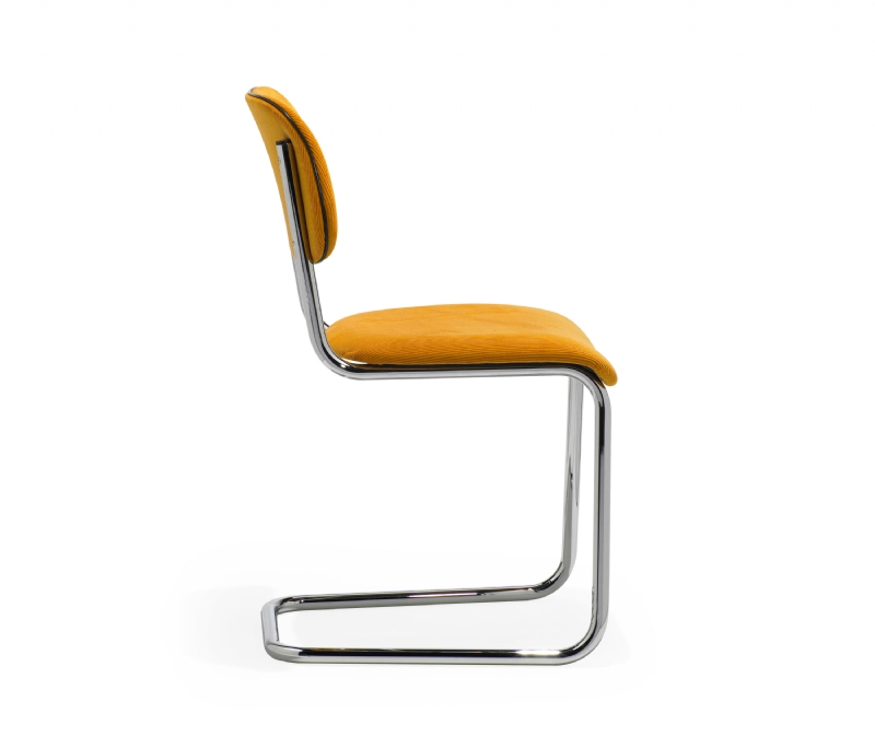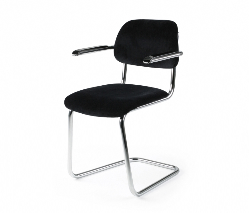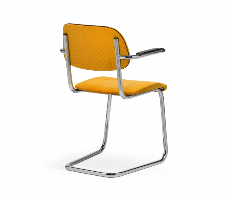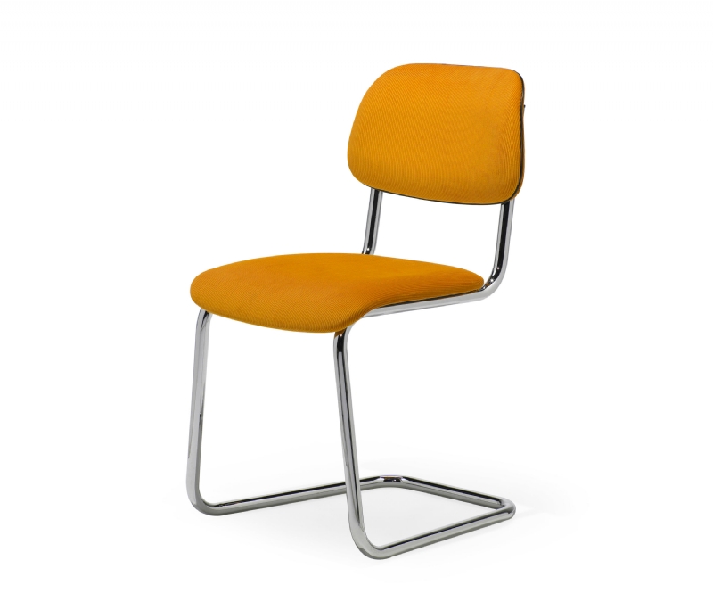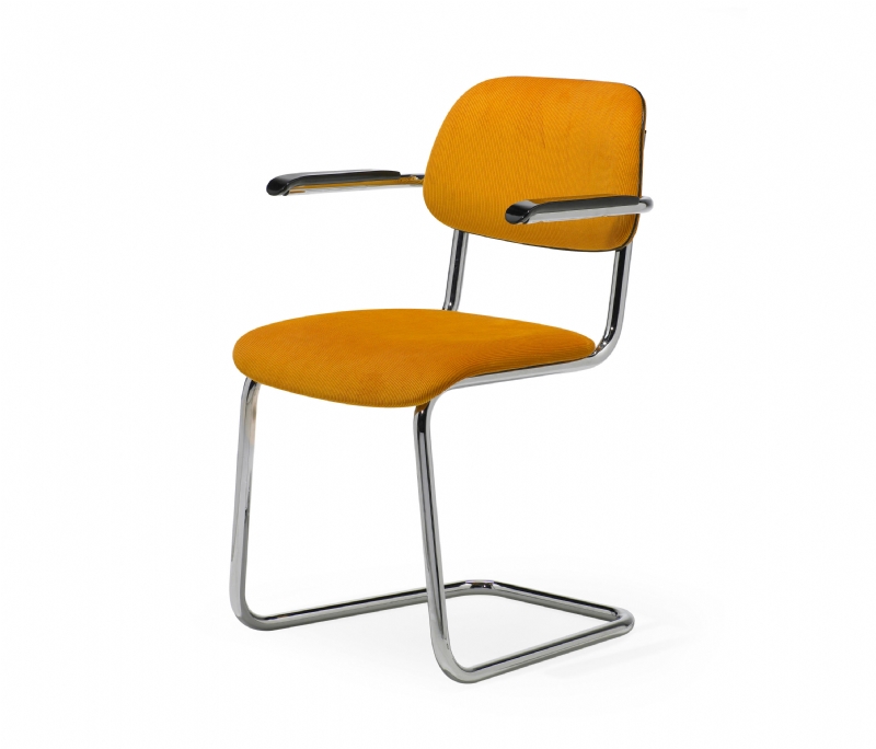 Wood, corduroy, Bakelite and chrome. You could even recognise this chair with your eyes shut. You just have to think about the films of yesteryear, or the schoolroom before or after them, or the trendy family you used to know. And then think of all the possibilities and applications now.