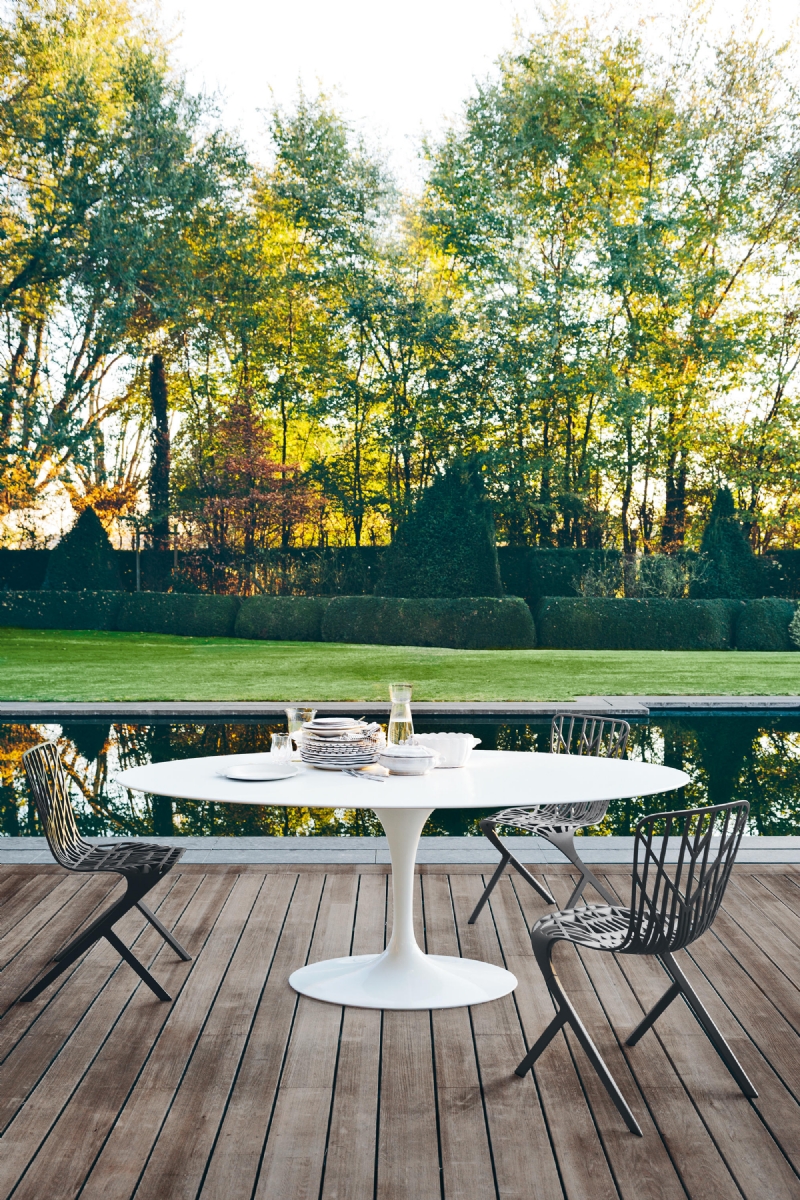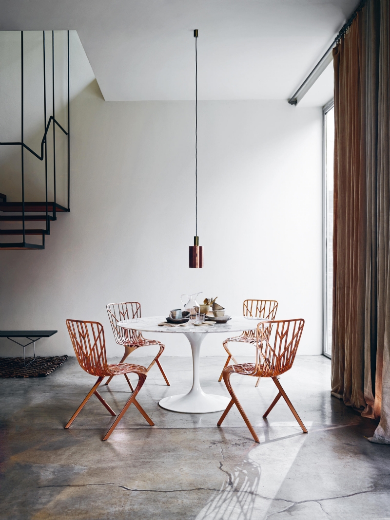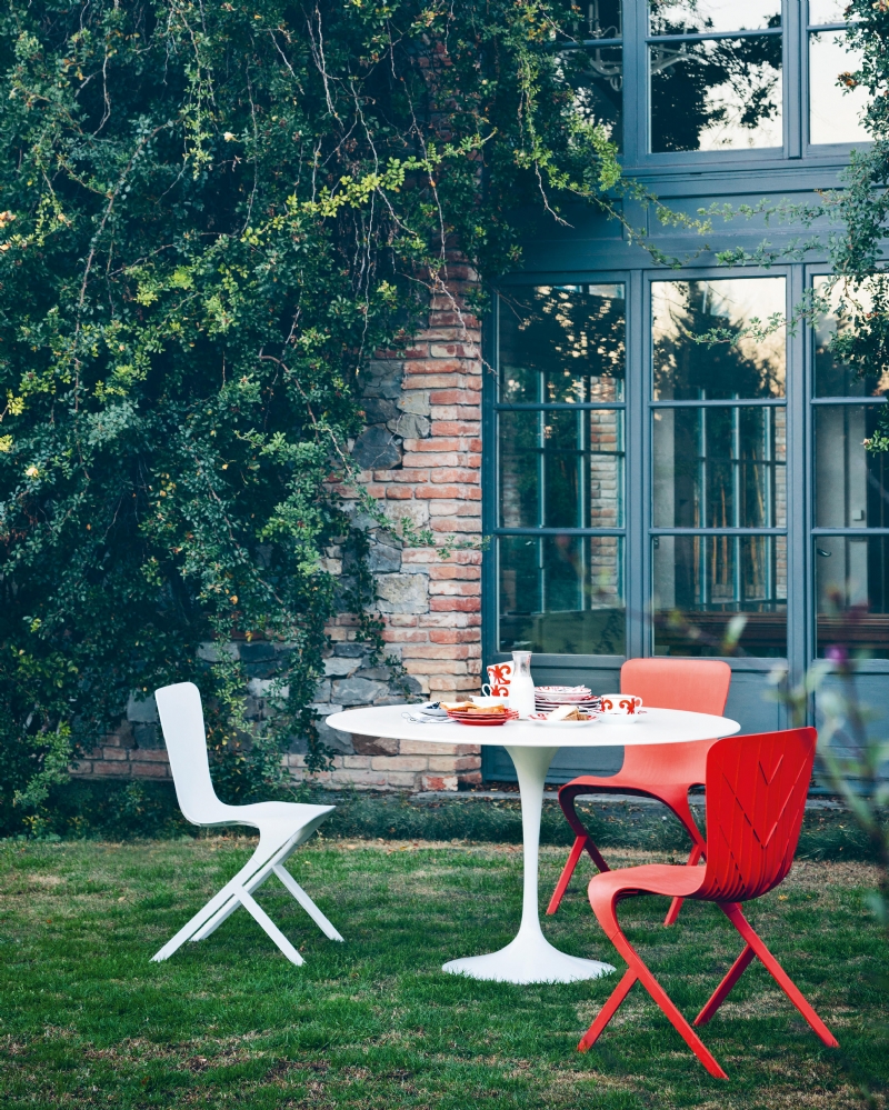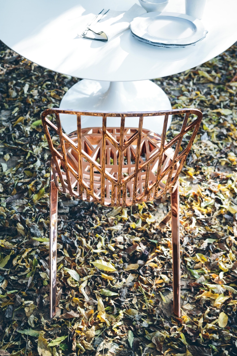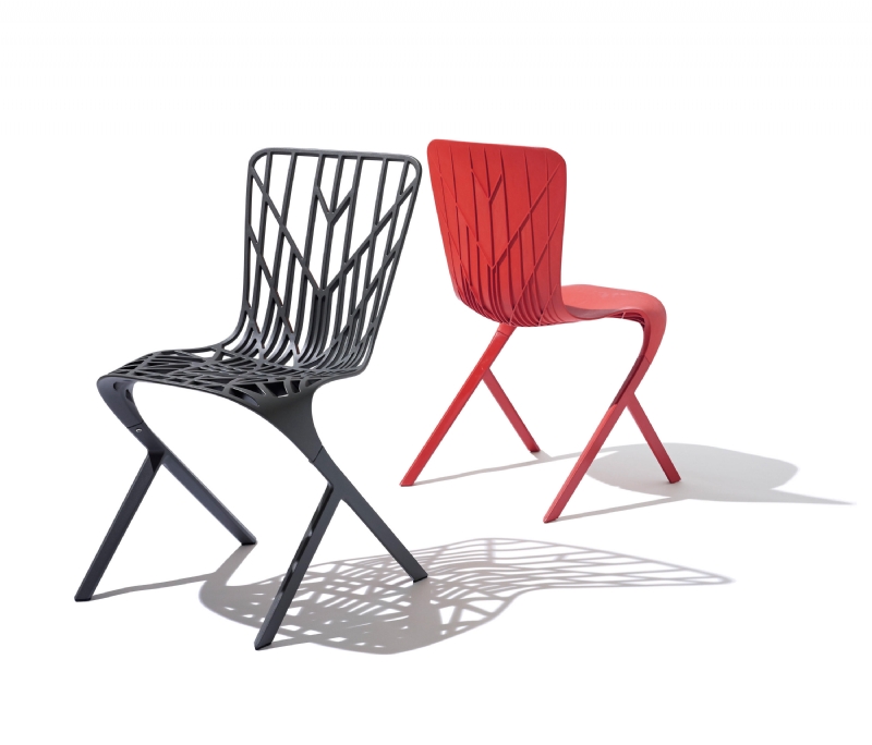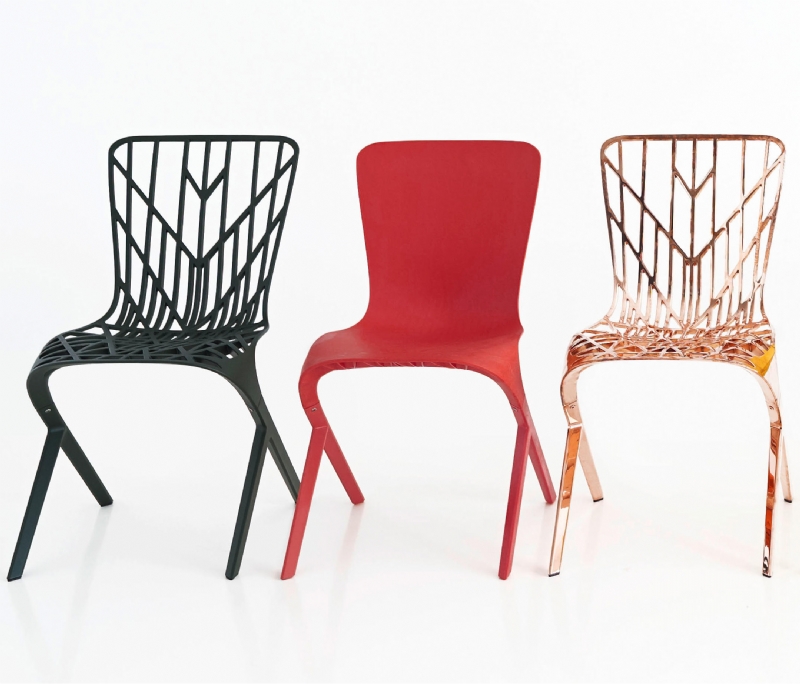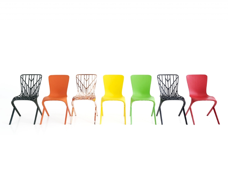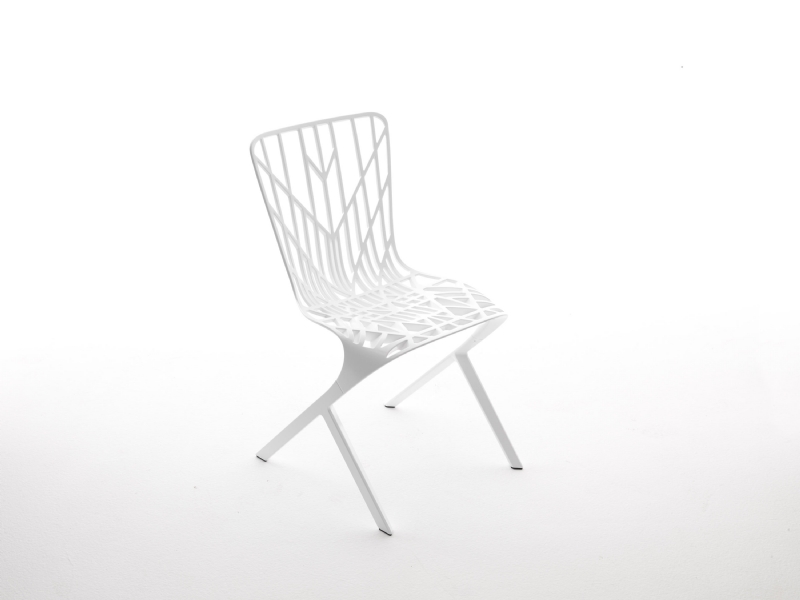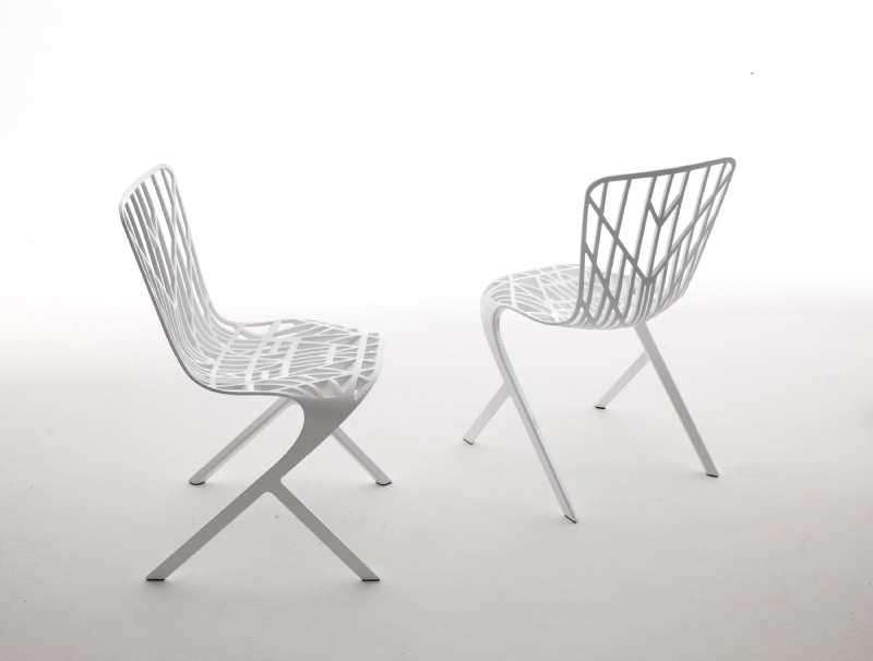 Of the two chairs – Washington Skeleton™ and Washington Skin™ – the former, produced in die-cast aluminium with a dense geometric grid, is also available for outdoor use, with an ultra-resistant finish in white, black, green and gray.