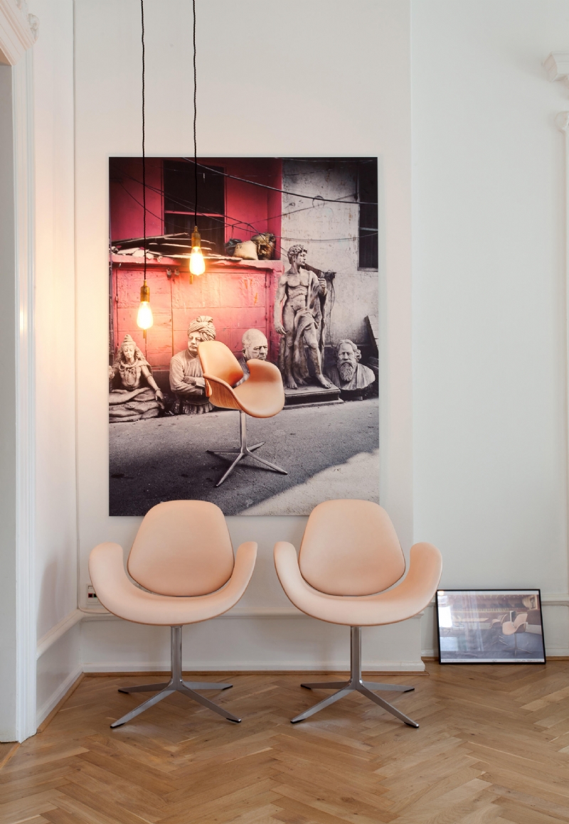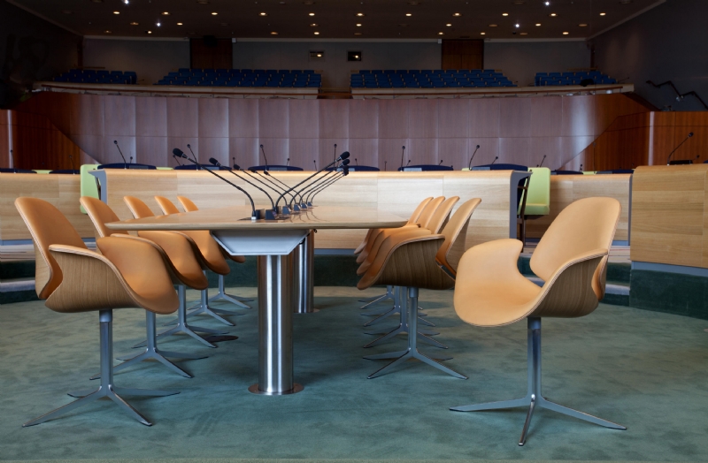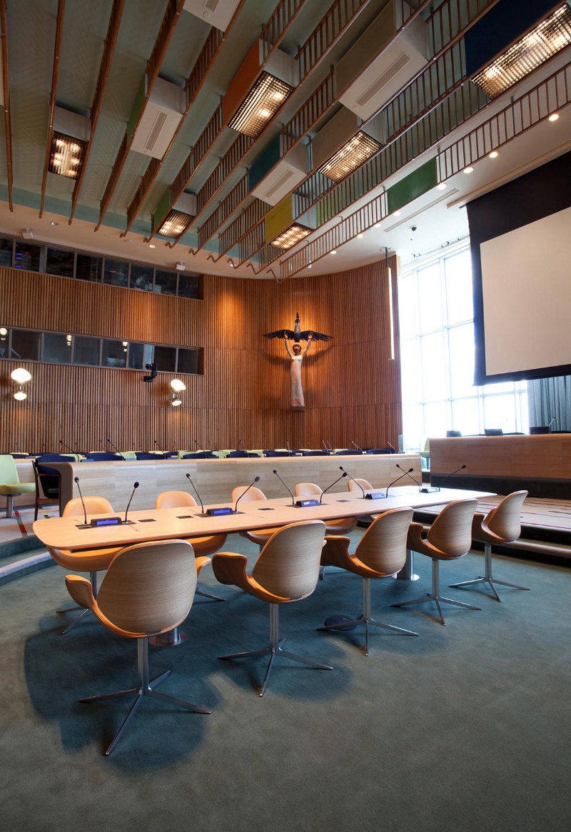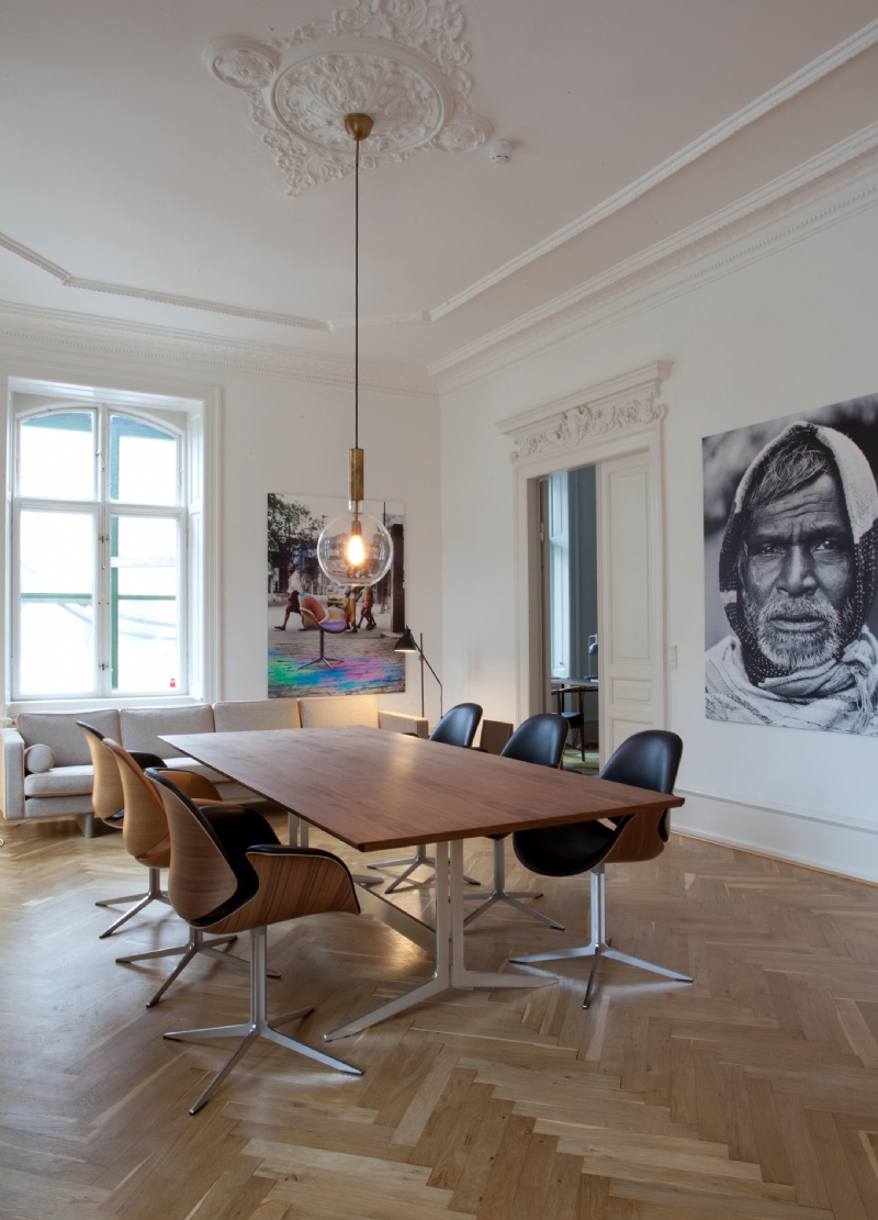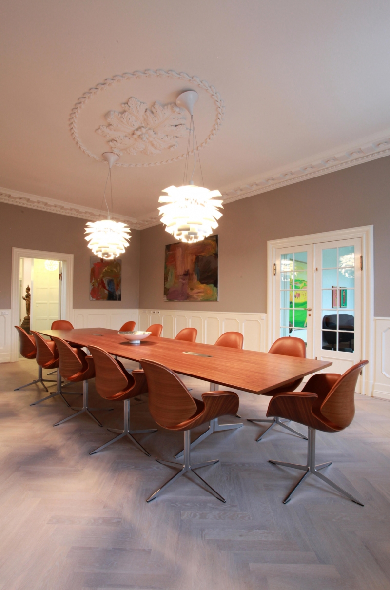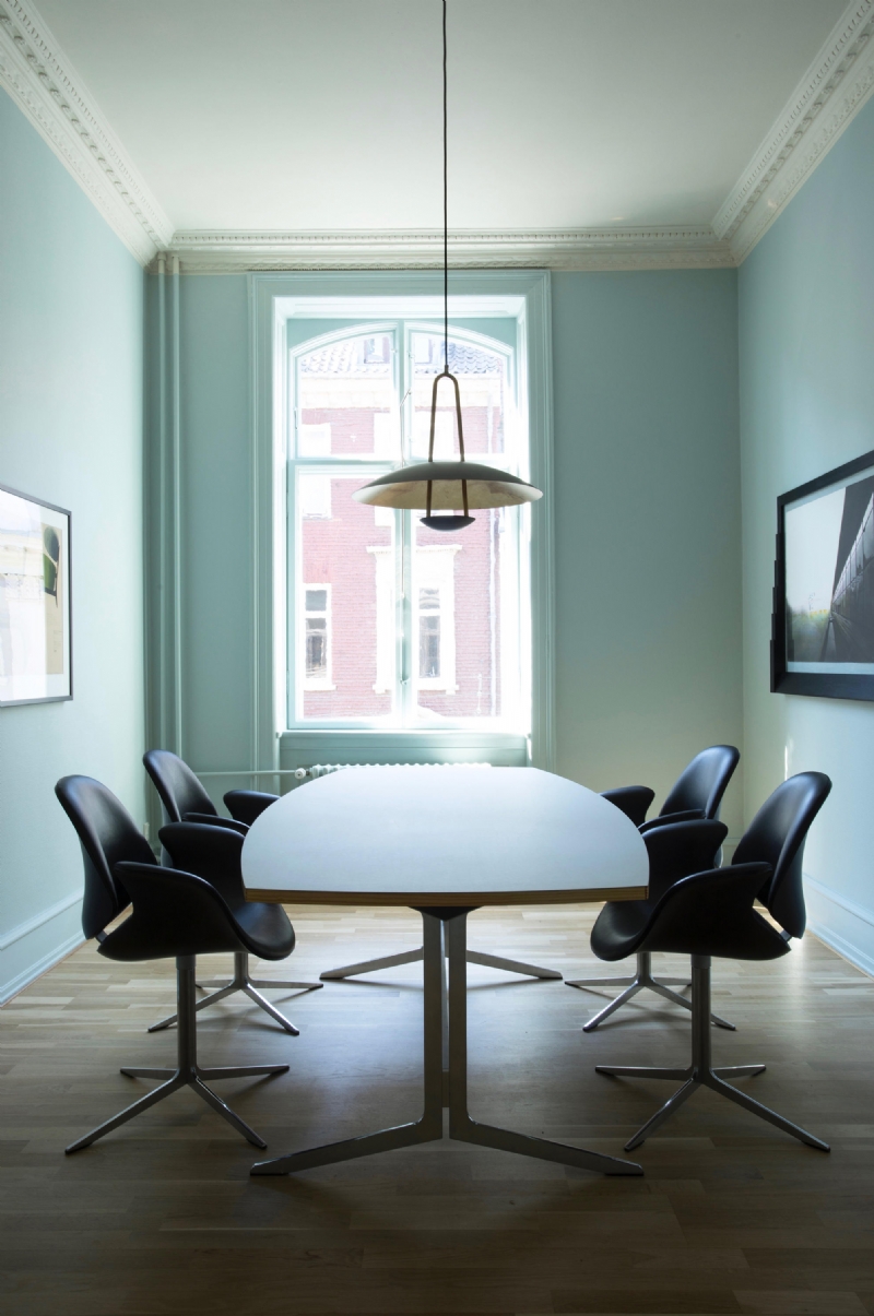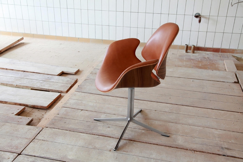 The chair is a construction of moulded 3D veneer in oak or walnut, upholstered with leather or fabric. The swivel base is cast in aluminium. ”Council Chair” is a new Danish design masterpiece – on the international design stage.