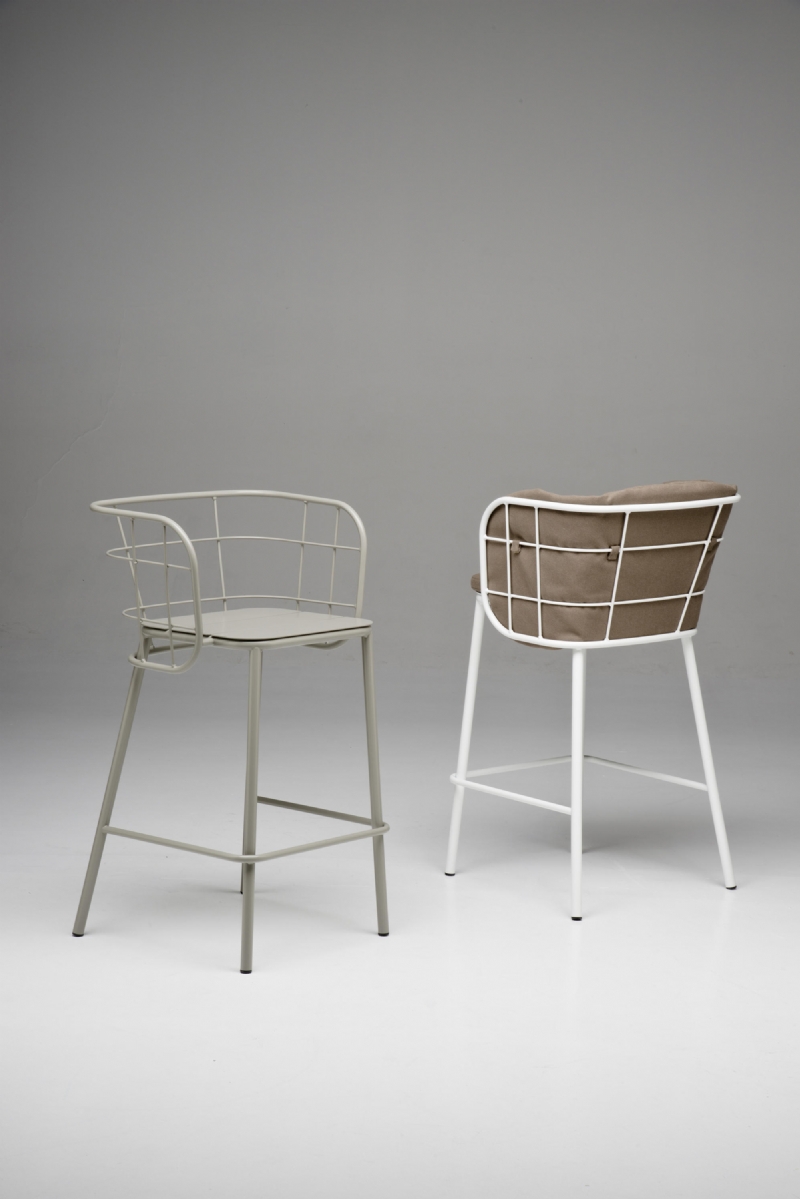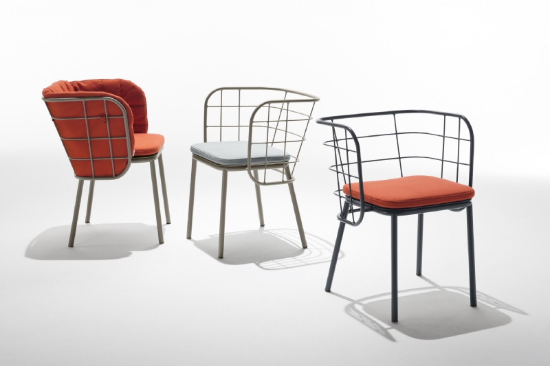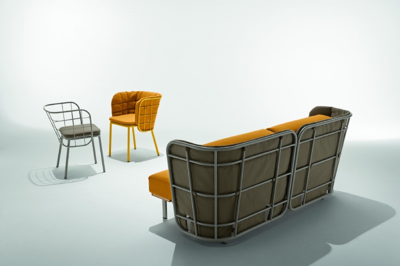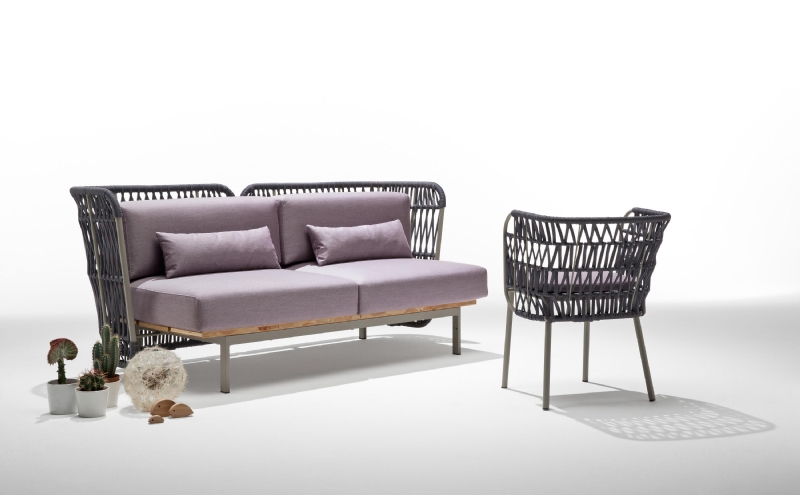 Jujube is a seating system consisting of modular elements which are combined each other to realize different types of seats. The tubular backrest, designed with metal rods, is the decorative element that characterize this collection, realized with materials and finishes resistant to weathering. The materials and finishes are fit for both the outdoor and the indoor use, because of the galvanized coating, the laminated larch, the weaving in nautical rope and the UV tested fabric, and resistant to humidity. The selection of refined and original materials, make the Jujube collection an authentic piece of furniture also for the indoor use, with the padded back and the wide range of colorful fabrics that adapt to different styles of interior design.