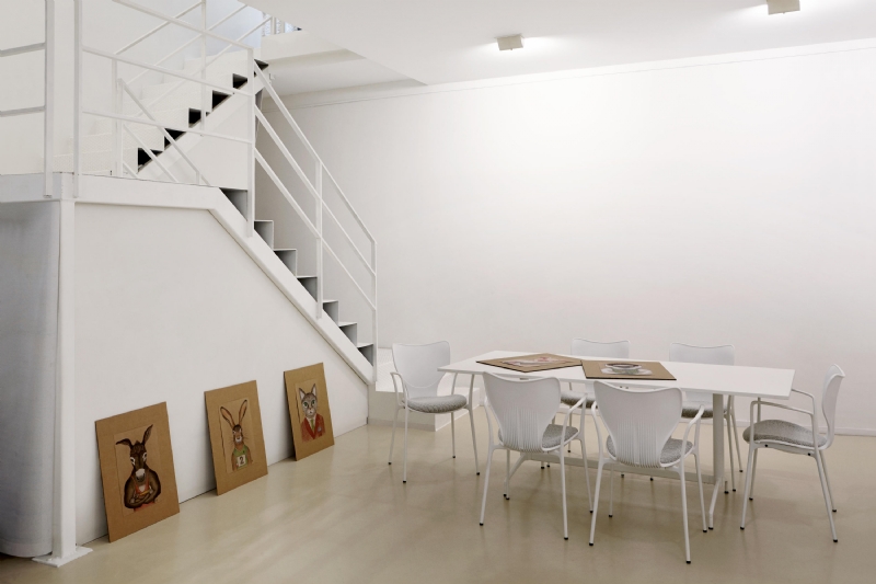 Beam with side legs in aluminium powdercoated or mirror polished, support structure in steel tube powdercoated. Optional table replacing a seat.