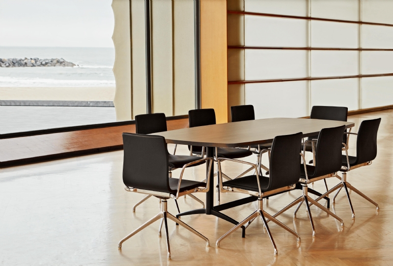 Office chair with or without arms in injected aluminium powdercoated, polished or chromed, 5 legs base in polished aluminium, with tilt mechanism, gas cylinder and with selfbraking hard or soft castors or glides.