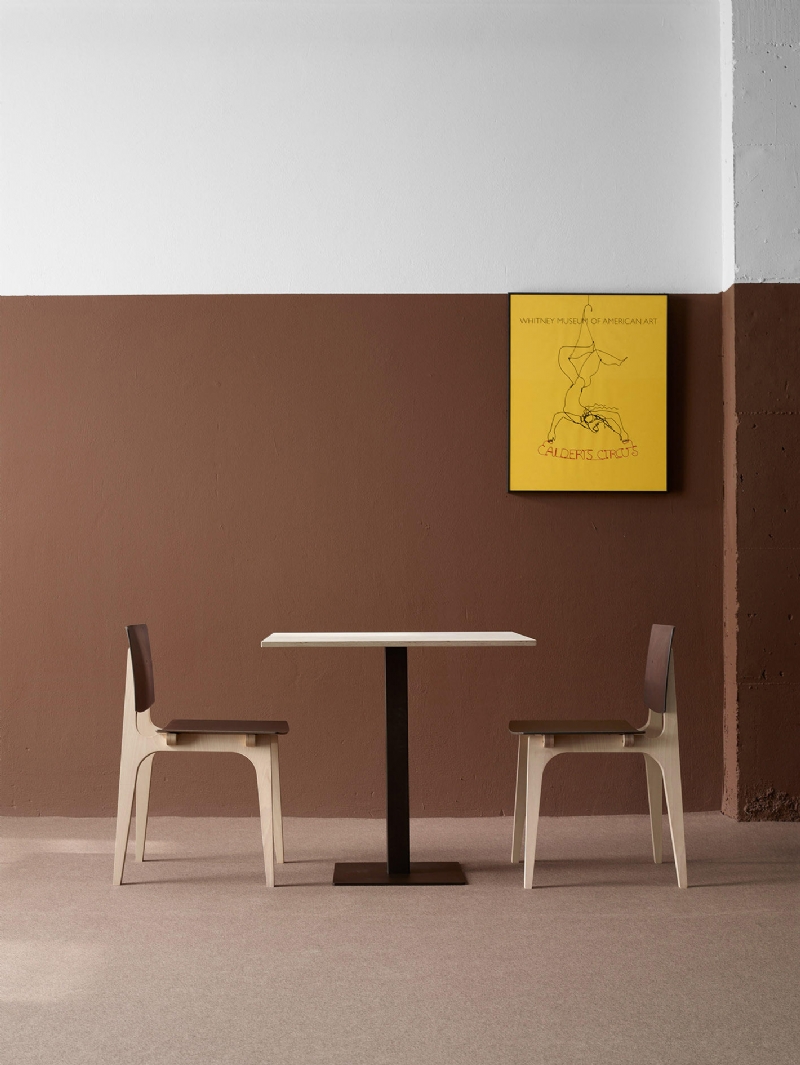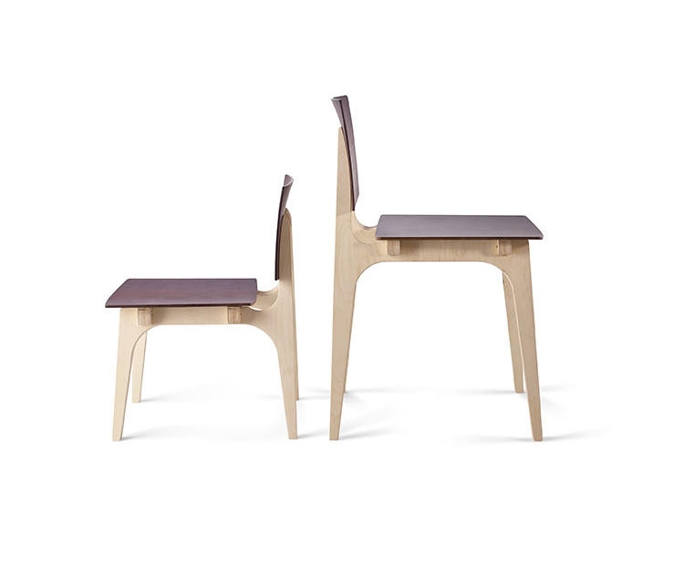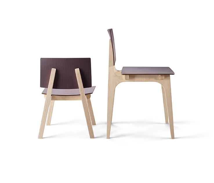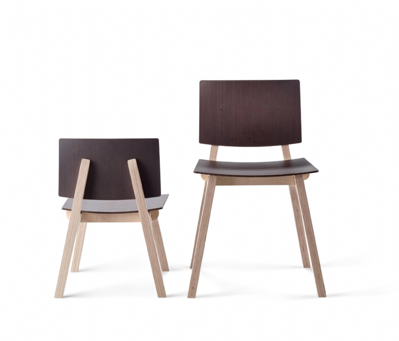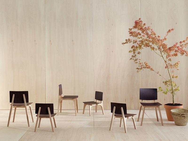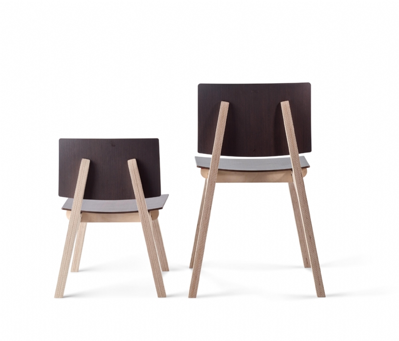 A pair of Asian chopsticks gave birth to the idea for this design, where the back legs are inclined, shaping the base geometry. Using its charming and innocent appearance, Mikado is strong lightweight and highly resistant. The Mikado Family´s structure is made with 30 mm birch wood. The parts are assembled with perfect mechanization. The seat and back curved at a high frequency and with a broad surface space, are made with plywood and phenolic laminate, offering high resistance and flexibility with a razor- thin 4mm back.