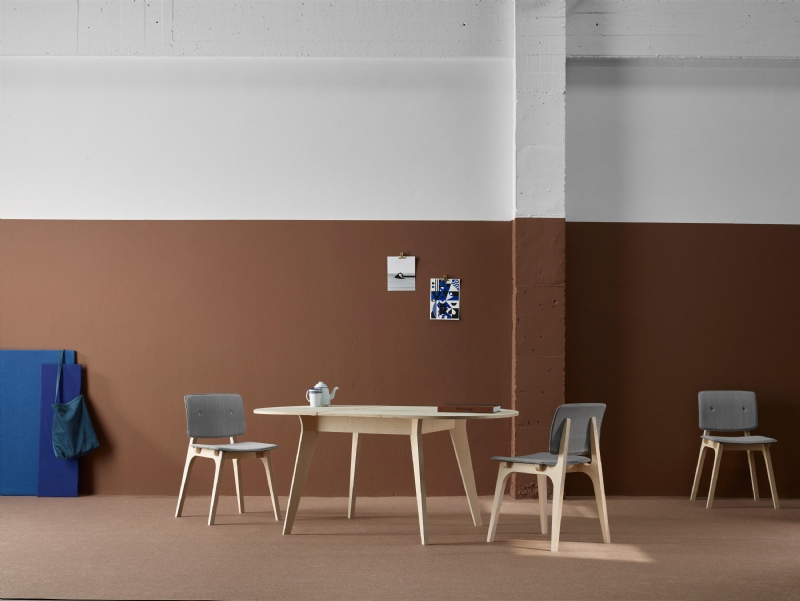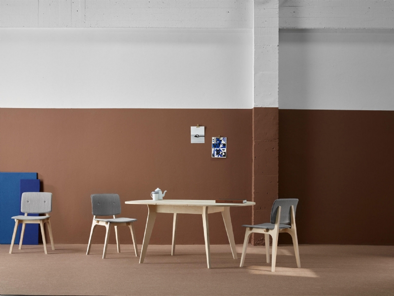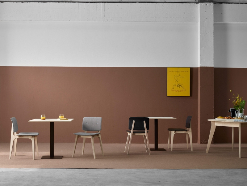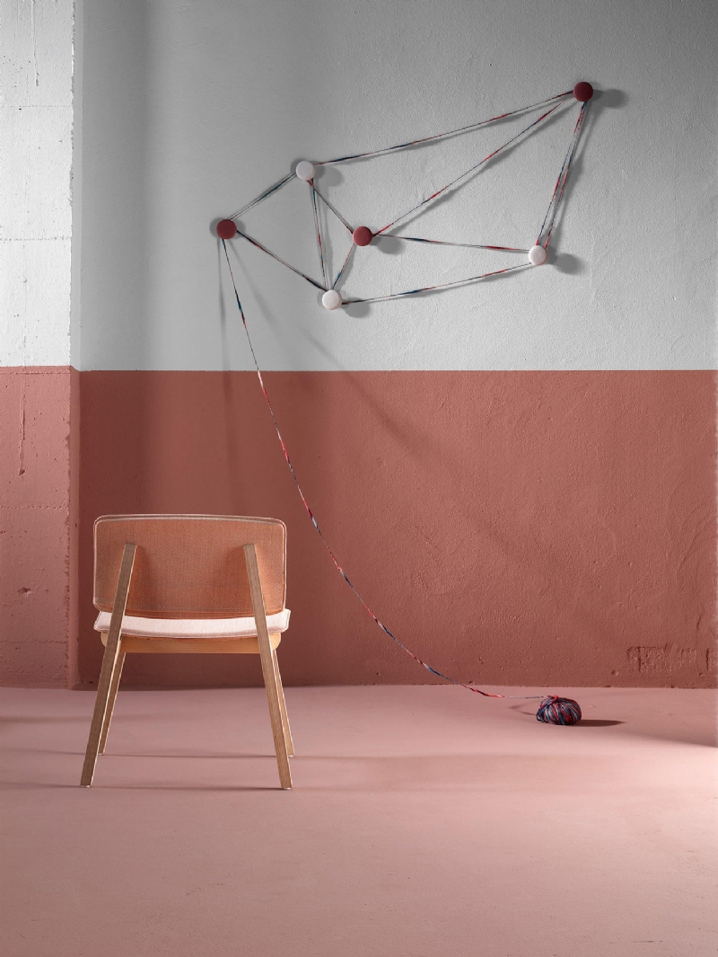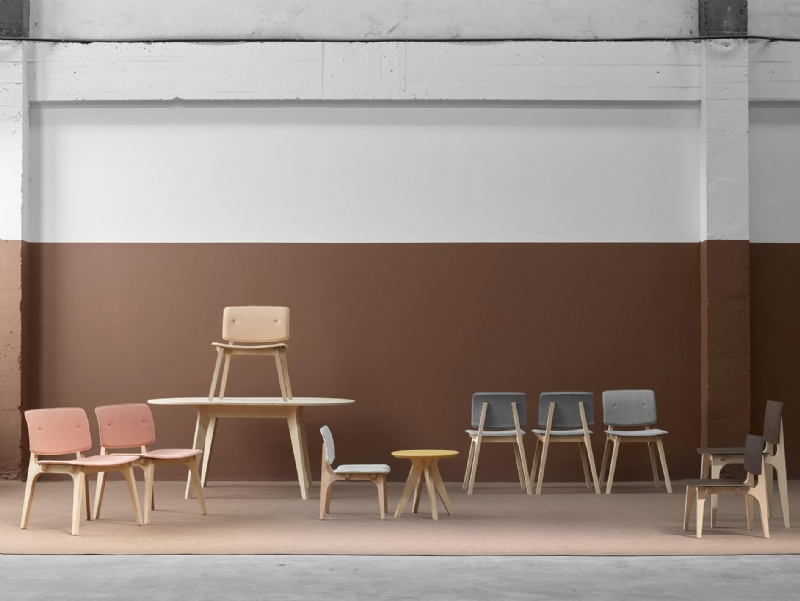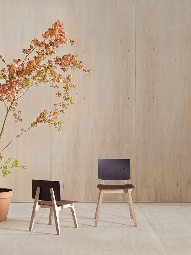 A pair of Asian chopsticks gave birth to the idea for this design, where the back legs are inclined, shaping the base geometry. Using its charming and innocent appearance, Mikado is strong lightweight and highly resistant. The Mikado Family´s structure is made with 30 mm birch wood. The parts are assembled with perfect mechanization. The seat and back curved at a high frequency and with a broad surface space, are made with plywood and phenolic laminate, offering high resistance and flexibility with a razor- thin 4mm back.
