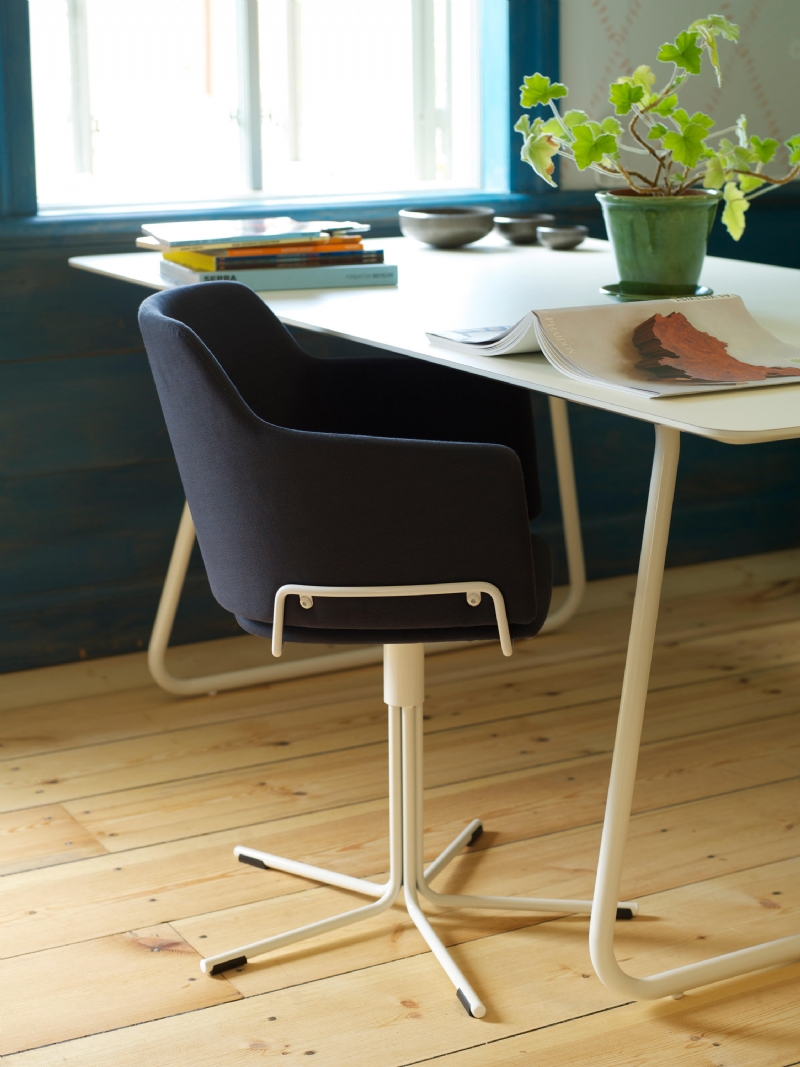 Skift is a family of chairs for several use. You can choose two different sizes, Skift and the more generous Skift Plus. A selection of frames, different colors, sledge, wheel, swivelling, wood and some with optional height-adjustment. All chairs are sustainability made in Sweden and have polstery base in wood that gives you the fortune to repolstery several times for future. Because of the separated back and seat you have the opportunity to choose different fabric or leather for each part.