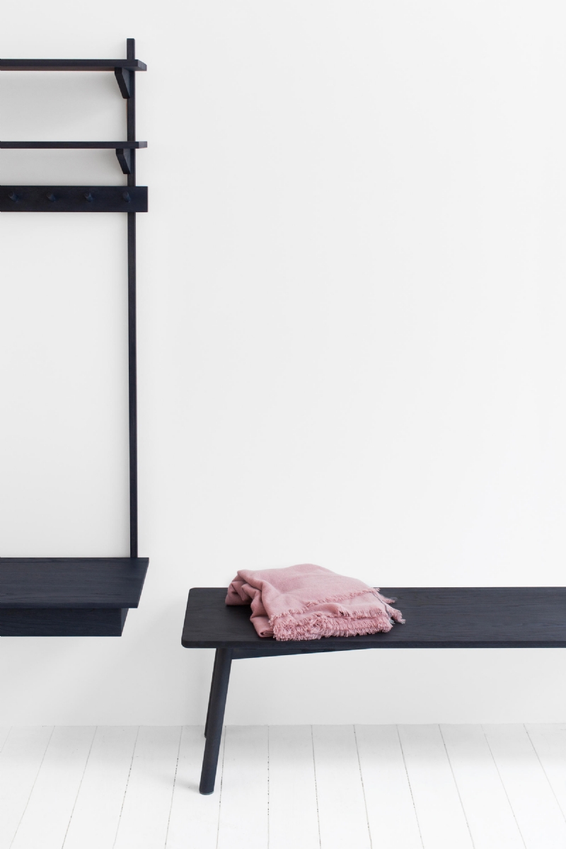 Solid ash and oak. All wood comes from controlled sustainable forestry. Each piece of wood has its individual grain and colour – that is what makes the resulting piece of furniture unique. The surface is stained with water-based pigments and finished with a hard wax seal.