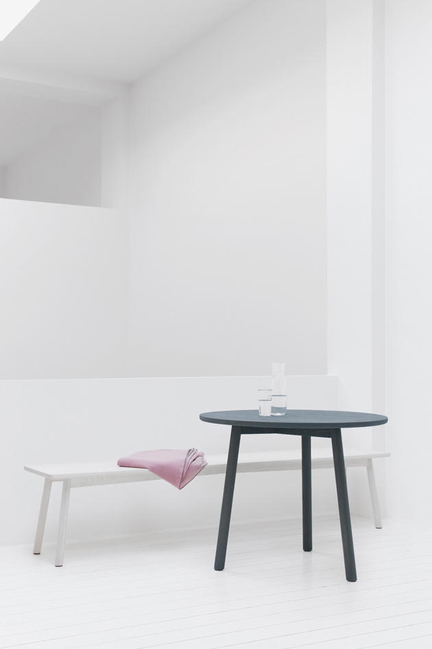 With a clear focus on reduced design and high-quality craftsmanship and construction, the product family PROFILE stands out due to its delicate proportions and versatile application. The family was designed by the Belgian designer Sylvain Willenz and consists of a chair, a bench, a square table and a round table. Made of oak or ash natural and available in all colours of the STNM range, the furniture with its archetypical design is suitable for private and public spaces. It can be used for many situations, such as waiting rooms, museums, cafés or restaurants, in the living room or in the kitchen.